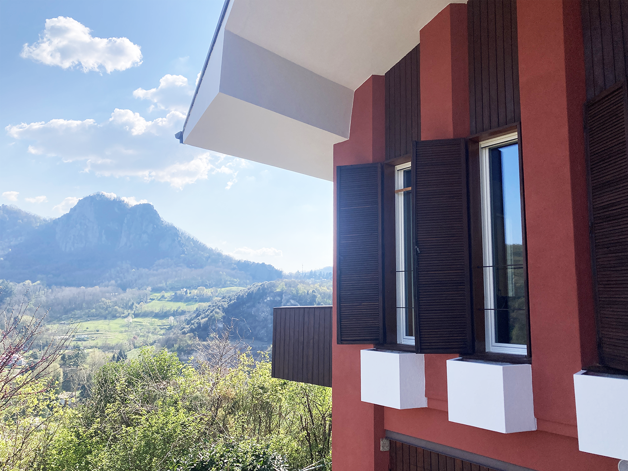 Fin dalla prima visita, un paio di anni fa, l'attuale proprietario è rimasto incantato dagli spazi originali di questa casa. Non ci ha messo molto a decidersi a comprarla, l'ampio salone, il terrazzo affacciato sulla valle, il giardino e il bosco che abbracciano la villetta erano proprio quello che stava cercando. L'unico difetto -comune a molti edifici dello stesso periodo- è la scarsa efficienza energetica. Una casa in cemento armato con questa esposizione e senza alcun tipo di isolamento non può che trasformarsi in una ghiacciaia in inverno e in una serra d'estate. Così si è deciso a rivolgersi al nostro Studio per rendere più efficiente e confortevole la sua abitazione. I lavori hanno previsto l'adeguamento degli impianti elettrico e termico, isolamenti interni, sostituzione dei serramenti e rinnovo di cucina e servizi igienici, ripristino delle facciate esterne.